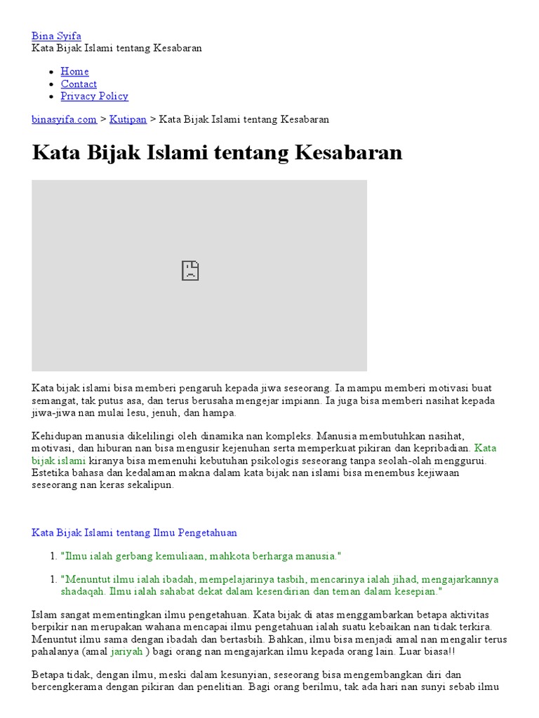 Kata Bijak Islami Tentang Kesabaran Kutipan Bina Syifa